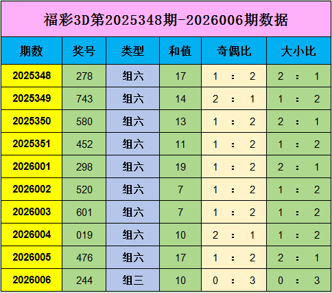 福彩3D上期开出奖号为244,奖号为组三形态,和值为10,奇偶比为0 : 3,大小比为0 : 3。