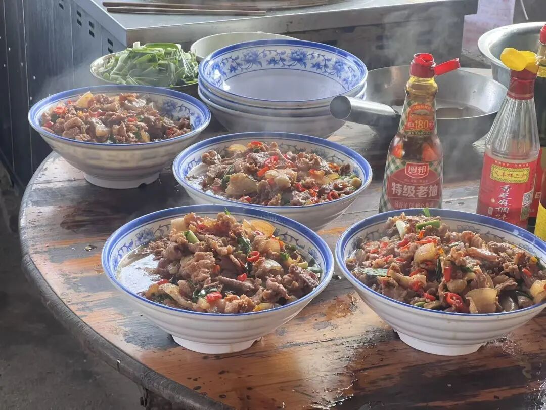 △13日,已经为远道而来的朋友们准备了新鲜的猪肉饭菜