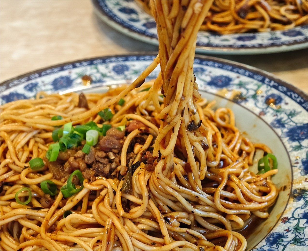 端上桌的担担面香气扑鼻,分量十足,我吃得正香,旁边桌的一位大爷主动和我搭话,虽然语言不通,却一直给我夹自己碗里的烧麦,还比划着让我多吃点。